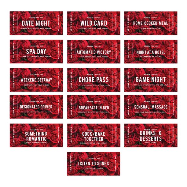 Andaz Press Red Roses Design Love Coupons For Him Her Boyfriend Girlfriend Funny Romantic Valentines Day 16 Pack Walmart Com