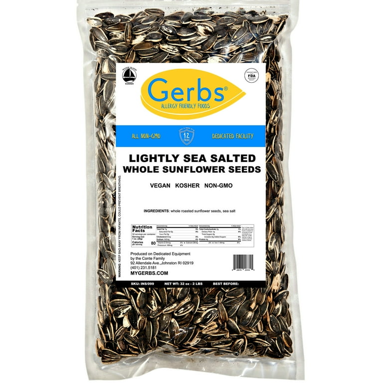 Lightly Sea Salted Sunflower Seed In Shell By Gerbs 2 Lbs Top 14 Food Allergen Free Non Gmo Dry Roasted Walmart Com